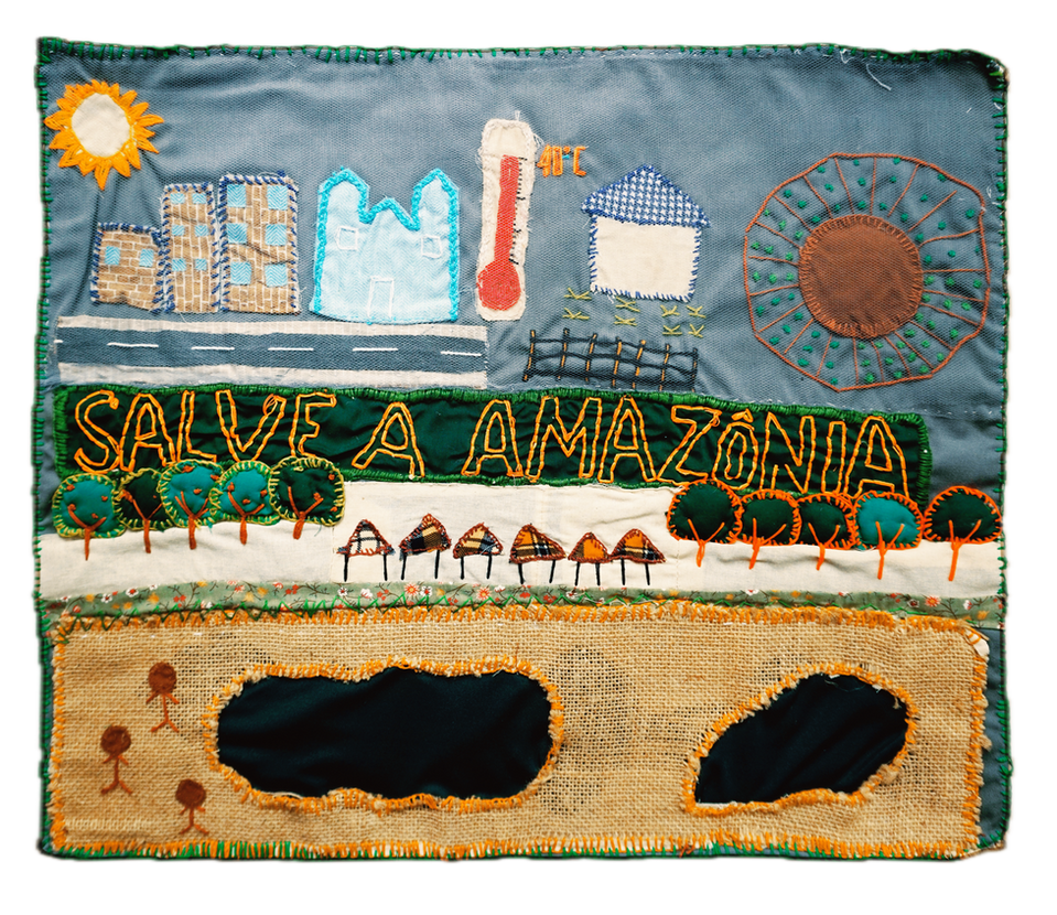 In den Arpilleras schildern betroffene Frauen die Situation der Flussuferbevölkerung angesichts der enormen Dürren der letzten Jahre, welche durch die illegale Brandrodung verschlimmert wird. Sie prangern auch den Kohlenstoffmarkt als vermeintliche Lösung für die Klimakrise an, verweisen auf die Situation der Wasserknappheit, der Abholzung und des illegalen Holzeinschlags, und thematisieren die Veränderungen der traditionellen Lebensweise der Menschen.